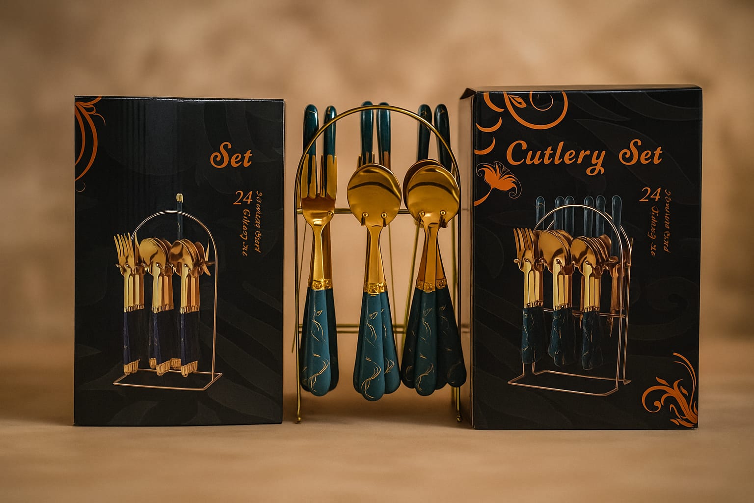 Set Cubiertos/Porta Dorado x24